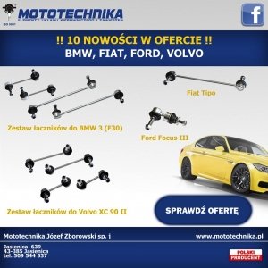 Nowościami są m.in. zestaw łączników do BMW 3 (F30) oraz Volvo XC 90 II, a także elementy do Fiata Tipo i Forda Focusa III. Szczegóły na www.mototechnika.pl