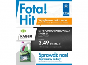 Do 22 kwietnia (piątek) trwa promocja w sieci sprzedaży Fota na letni płyn do spryskiwaczy firmy Kager. Szczegóły na załączonej ulotce. Fota jest czołowym polskim dystrybutorem części zamiennych do...