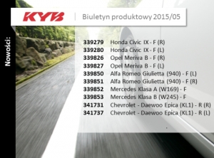 Ostatni w ubiegłym roku biuletyn produktowy KYB informuje o kolejnych nowościach w ofercie firmy.Nowe podzespoły znajdą zastosowanie w autach takich marek, jak Honda, Opel, Alfa Romeo, Mercedes i...