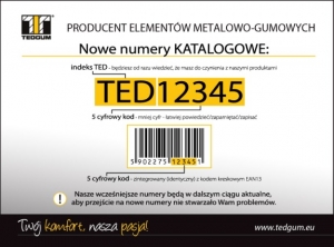 Firma TEDGUM upraszcza system numerów katalogowych. Nowe numery będą posiadały: - znacznik TED – od razu będziemy wiedzieć, że mamy do czynienia z produktami TEDGUM, - 5-cyfrowy kod – mniej...