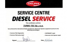Firma Turbo Tec otrzymała nowy certyfikat potwierdzający przynależność do międzynarodowej sieci serwisów „Diesel Service” firmy Delphi.Certyfikat potwierdza spełnienie wymaganych...