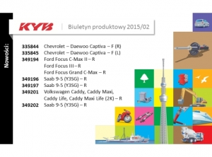 Biuletyn produktowy KYB 2015/02 informuje o kolejnych nowościach w ofercie.Nowe elementy znajdą zastosowanie w pojazdach takich marek, jak Chevrolet, Ford, Saab i Volkswagen. Szczegóły na załączonej...