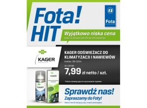 Firma Fota obniżyła cenę odświeżacza do klimatyzacji i nawiewów Kager.Promocja trwa od 20 do 24 kwietnia br. Szczegóły na załączonej ulotce.