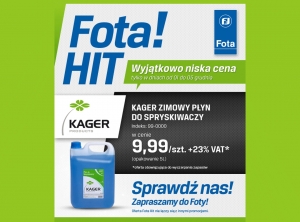 Firma Fota obniżyła cenę zimowego płynu do wtryskiwaczy marki Kager.Promocja trwa od 1 do 5 grudnia br. Szczegóły na załączonej ulotce.