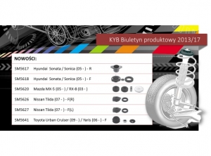 W ofercie firmy KYB pojawiły się nowe amortyzatory do pojazdów marki Hyundai (Sonata, Sonica), Mazda (MX-5, RX-8), Nissan (Tiida) i Toyota (Urban Cruiser, Yaris).Szczegóły w najnowszym biuletynie.