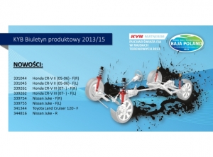 Najnowszy biuletyn produktowy KYB 2013/15 informuje o nowościach do następujących pojazdów: Honda CR-V, Nissan Juke i Toyota Land Cruiser.Szczegóły na załączonej ULOTCE.