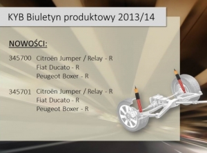 Najnowszy biuletyn produktowy KYB 2013/14 informuje o nowościach do pojazdów dostawczych: Fiat Ducato, Peugeot Boxer i Citroen Jumper.Szczegóły na załączonej ULOTCE.
