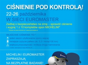 Prowadzona w Polsce od 8 lat akcja Michelin „Ciśnienie pod Kontrolą” przypomina kierowcom o konieczności utrzymywania prawidłowego ciśnienia w oponach. Michelin we współpracy z siecią serwisów Euromaster...