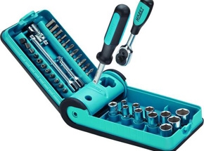 Przy otwarciu pudełka ”Smartcase” z kluczami nasadowymi wielkości 1 cali, podajnik narzędzi ustawia się automatycznie: na klapce pojawiają się gotowe do użycia 22 bity i narzędzia, po środku zaś znajduje...