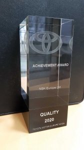 Toyota Motor Europe (TME) przyznała firmie NSK Europe dwie nagrody: Certificate of Recognition (w kategorii ostawcy) oraz Achievement Award (w kategorii Jakość).TME co roku podsumowuje wyniki swoich dostawców...
