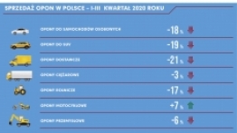 Według danych Polskiego Związku Przemysłu Oponiarskiego (PZPO) po trzech kwartałach 2020 roku producenci i importerzy opon w Polsce odnotowali spadki sprzedaży na rynek sięgające -20% w niemal wszystkich...