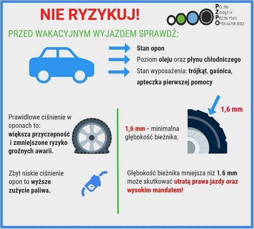 „Kierowcy często zapominają o dokładnej kontroli opon w swoich samochodach. Mierzenie stanu ogumienia „na oko”, może prowadzić do tragicznych konsekwencji. Nawet zwykła awaria może popsuć nam wymarzone wakacje i generować dodatkowe koszty. Dlatego bardzo ważna jest konsekwentna edukacja kierowców w zakresie norm bezpieczeństwa oraz odpowiedniej eksploatacji najważniejszych podzespołów auta” – mówi Piotr Sarnecki, dyrektor generalny Polskiego Związku Przemysłu Oponiarskiego (PZPO). „W końcu opona to trzeci po turbinie i wałku w silniku najszybciej obracający się element w samochodzie i skutki jej nagłego pęknięcia najczęściej są opłakane. Dlatego poziom ciśnienia zawsze mierzymy ciśnieniomierzem” – dodaje.
